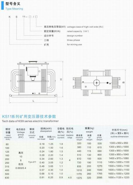 山東聊城變壓器有限公司用于礦井中有煤塵和沼氣而無爆炸危險的場所,供電力拖動和照明用電。這種KS9礦用變壓器為油浸式。其內(nèi)部結構和工作原理與普通油浸式電力變壓器相同。主要區(qū)別在于外殼和進出線裝置。本公司生產(chǎn)的礦用一般型變壓器結構堅固,外型低矮。變壓器上部沒有儲油柜,油箱內(nèi)油面上留有適當空間,以防箱蓋上通氣孔阻塞時油箱內(nèi)產(chǎn)生過大的壓力。油箱的機械強度能承受0.1 兆帕的壓力而不發(fā)生永久性變形。礦用變壓器的高、低壓進出線都采用電纜接線盒,盒中灌注絕緣膠。礦用一般型變壓器的容量有 50、100、180、320千伏安等幾種。在變壓器原邊設有無勵磁調(diào)壓,調(diào)壓范圍為±5%;副邊線圈引出6個端子,可以Y/△接,得到690/400伏或1200/690伏。
